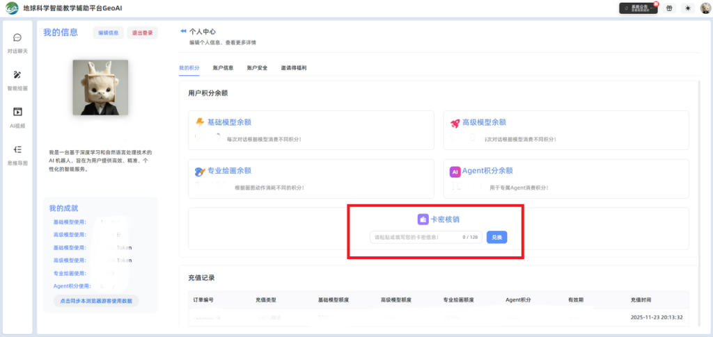 确认兑换码无误后,点击“兑换”,即可成功获得 AI 平台积分。